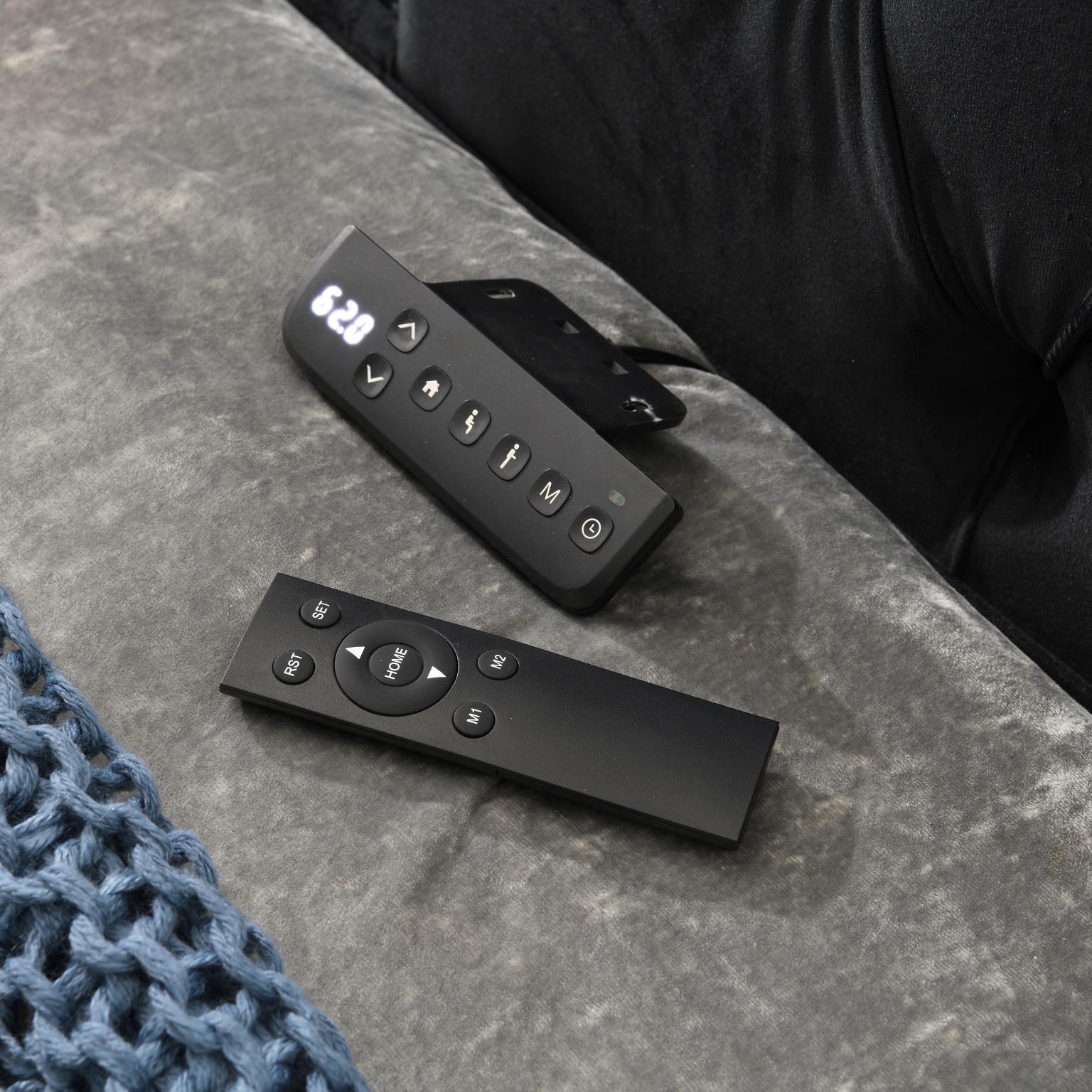 BLACK VELVET QUEEN BED W/FIREPLACE, TV MOUNT & BLUETOOTH SPEAKER & USB