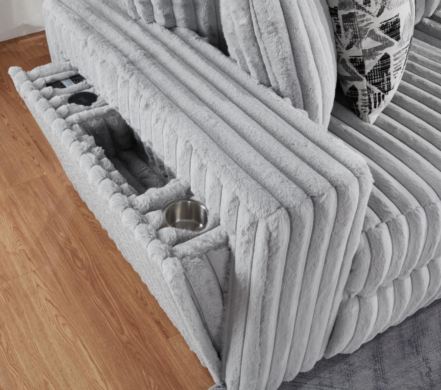GRAY CORDUROY POWER RECLINING 4 PC SECTIONAL W/2 WIRELESS CHARGER