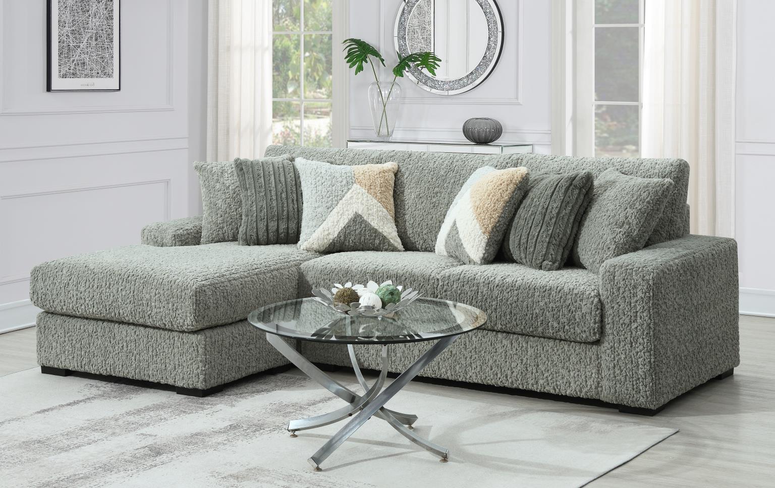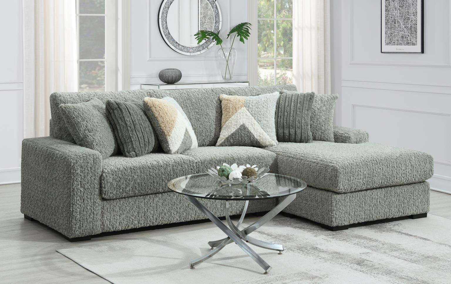 6PC SETIONAL WITH RIGHT CHAISE AS SHOWN IN MAIN PHOTO (1 LAF + 1 W + 2 AC + 1 CN + 1 RAC)